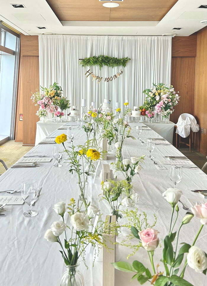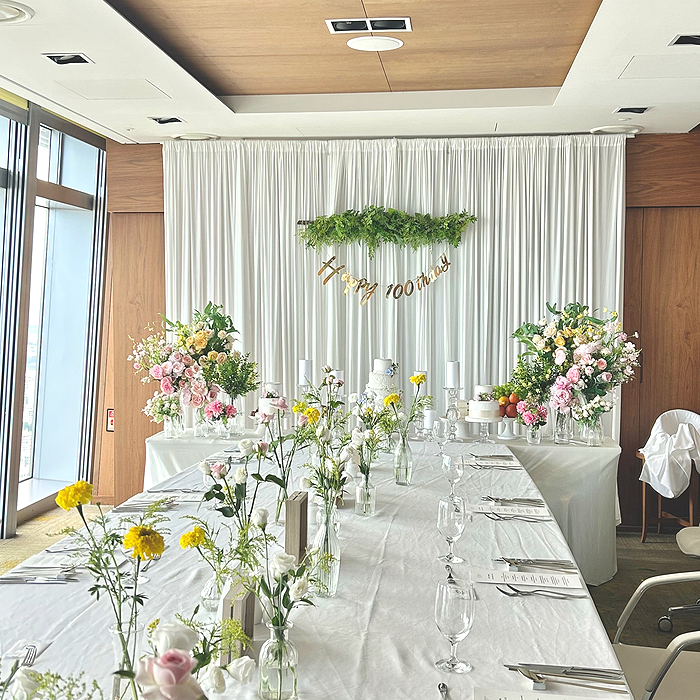 손님테이블 생화장식 추가